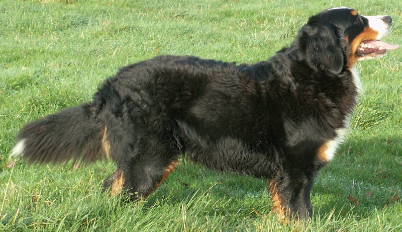 DCC.YEUX MARRON FONCES.CHIENNE PUISSANTE.BONS APLOMBS AVANT.OUVERT DANS SON ARRIERE.BELLE LARGEUR DE POITRINE.DOS UN PEU SOUPLE.SERRE DES POSTERIEURES AUX ALLURES.BON MOUVEMENT.